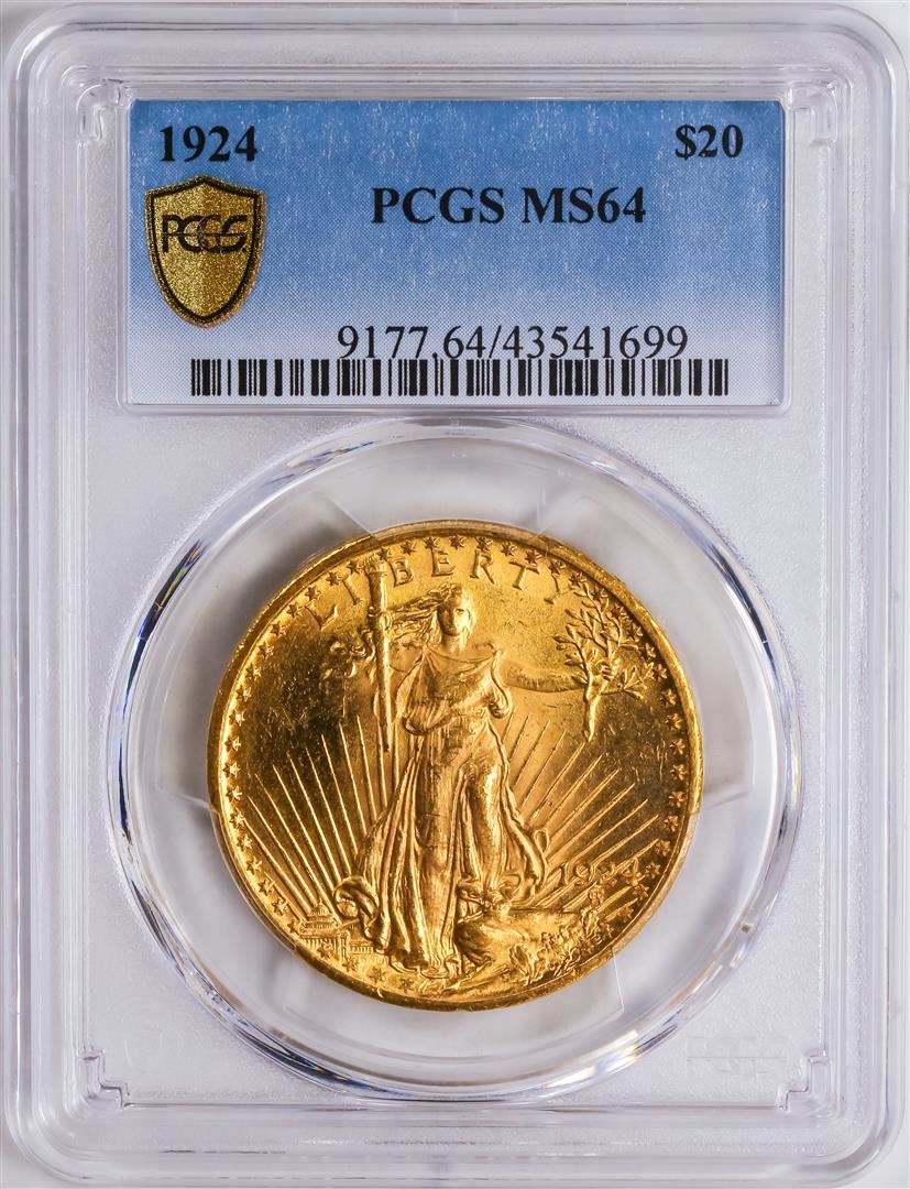 One 1924 $20 St. Gaudens Double Eagle Gold Coin PCGS MS64.
