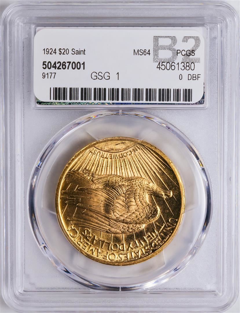 One 1924 $20 St. Gaudens Double Eagle Gold Coin PCGS MS64.