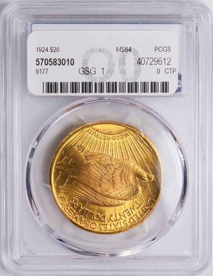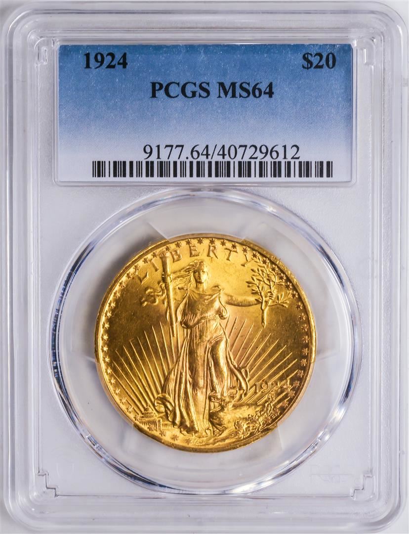 One 1924 $20 St. Gaudens Double Eagle Gold Coin PCGS MS64.