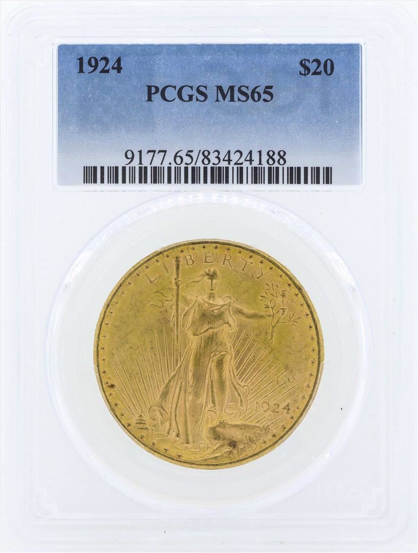 One 1924 $20 St. Gaudens Double Eagle Gold Coin PCGS MS65. PCGS Graded.