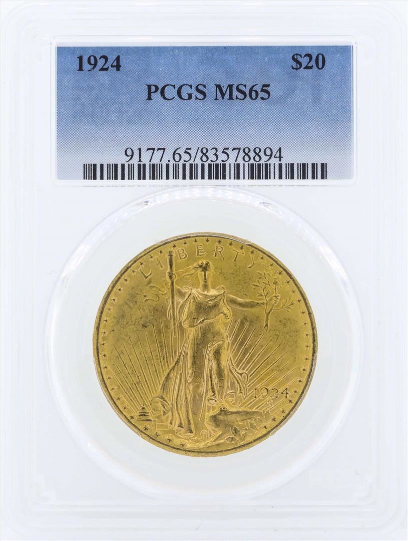 One 1924 $20 St. Gaudens Double Eagle Gold Coin PCGS MS65. PCGS Graded.