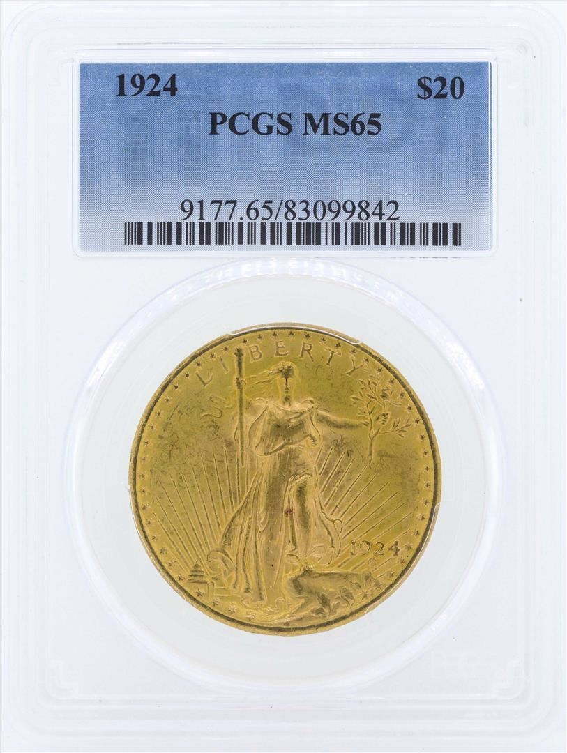 One 1924 $20 St. Gaudens Double Eagle Gold Coin PCGS MS65. PCGS Graded.