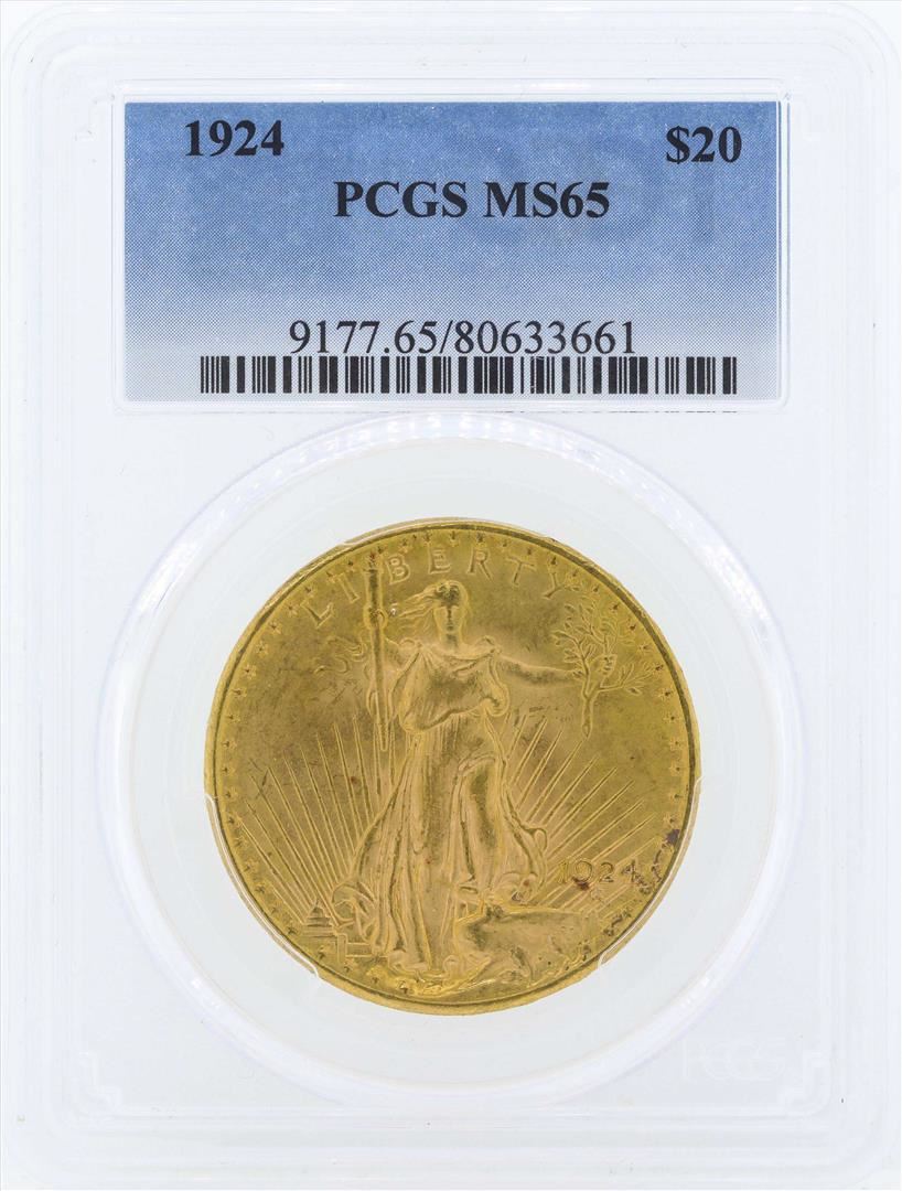 One 1924 $20 St. Gaudens Double Eagle Gold Coin PCGS MS65. PCGS Graded.