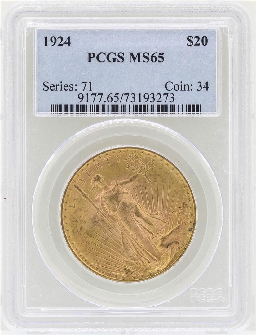One 1924 $20 St. Gaudens Double Eagle Gold Coin PCGS MS65. PCGS Graded.