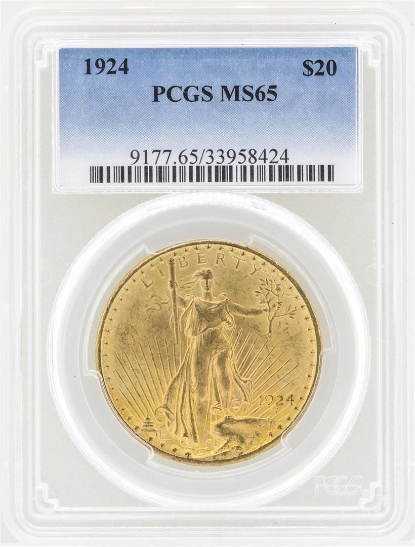 One 1924 $20 St. Gaudens Double Eagle Gold Coin PCGS MS65. PCGS Graded.