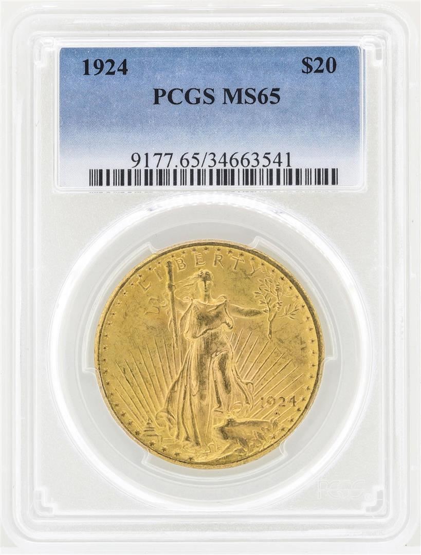 One 1924 $20 St. Gaudens Double Eagle Gold Coin PCGS MS65. PCGS Graded.