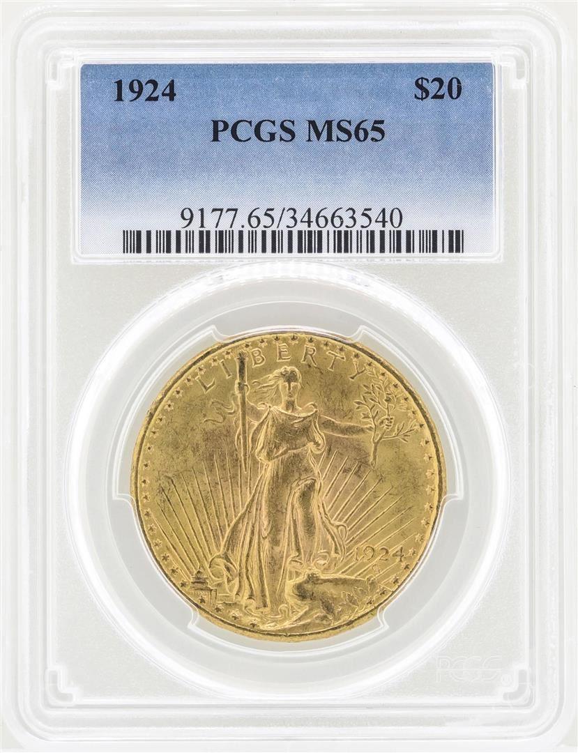 One 1924 $20 St. Gaudens Double Eagle Gold Coin PCGS MS65. PCGS Graded.