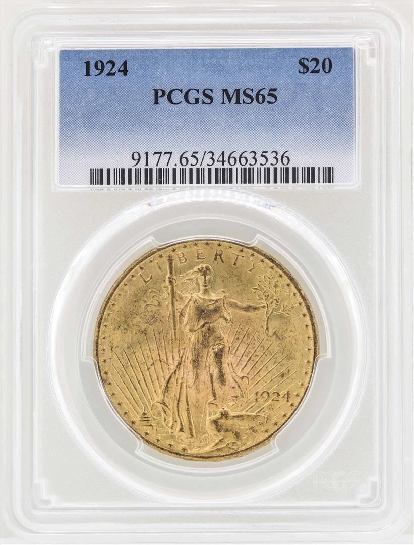One 1924 $20 St. Gaudens Double Eagle Gold Coin PCGS MS65. PCGS Graded.