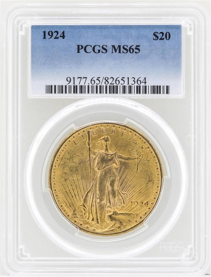 One 1924 $20 St. Gaudens Double Eagle Gold Coin PCGS MS65. PCGS Certified.