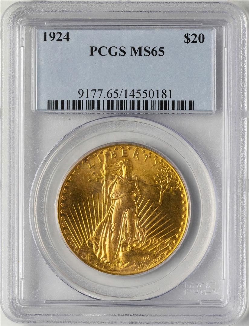 One 1924 $20 St. Gaudens Double Eagle Gold Coin PCGS MS65. PCGS Graded.
