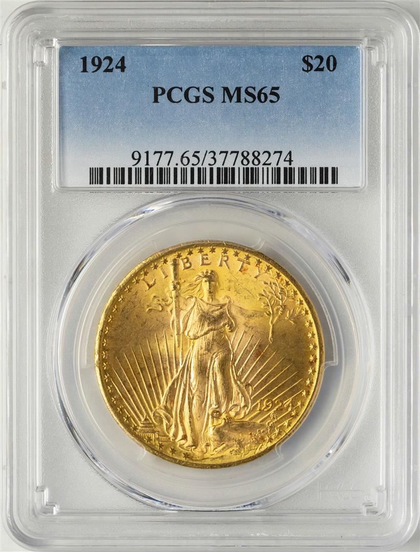 One 1924 $20 St. Gaudens Double Eagle Gold Coin PCGS MS65. PCGS Graded.