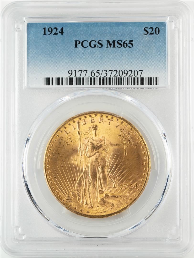 One 1924 $20 St. Gaudens Double Eagle Gold Coin PCGS MS65. PCGS Graded.