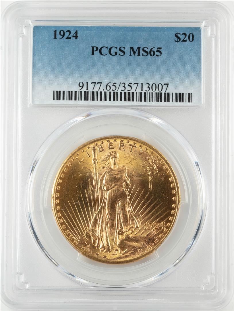 One 1924 $20 St. Gaudens Double Eagle Gold Coin PCGS MS65. PCGS Graded.