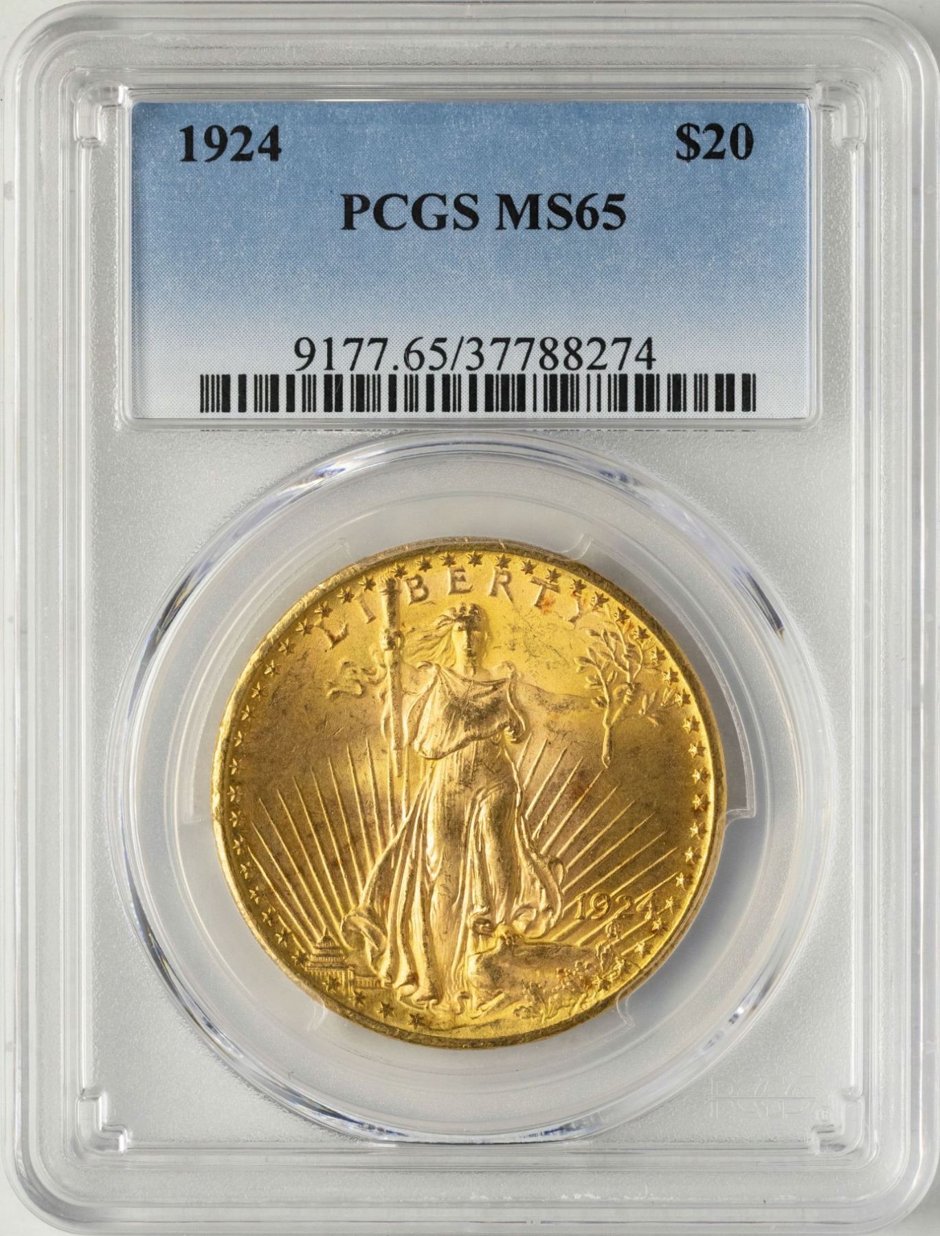 One 1924 $20 St. Gaudens Double Eagle Gold Coin PCGS MS65.