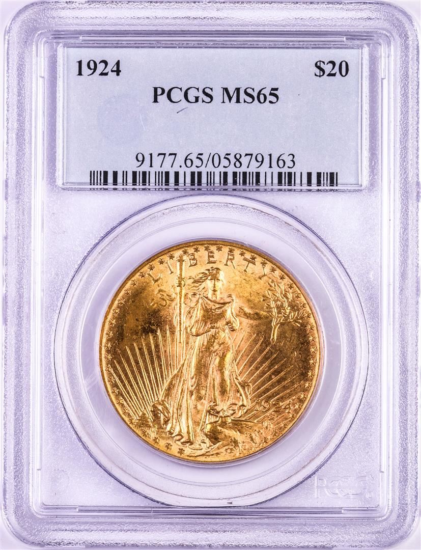 One 1924 $20 St. Gaudens Double Eagle Gold Coin PCGS MS65. PCGS Graded.