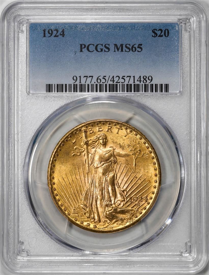 One 1924 $20 St. Gaudens Double Eagle Gold Coin PCGS MS65. PCGS Graded.