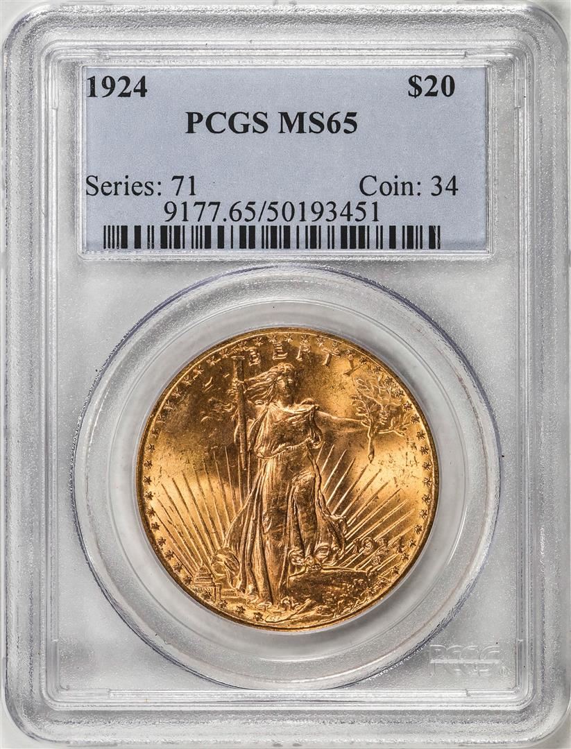 One 1924 $20 St. Gaudens Double Eagle Gold Coin PCGS MS65. PCGS Graded.