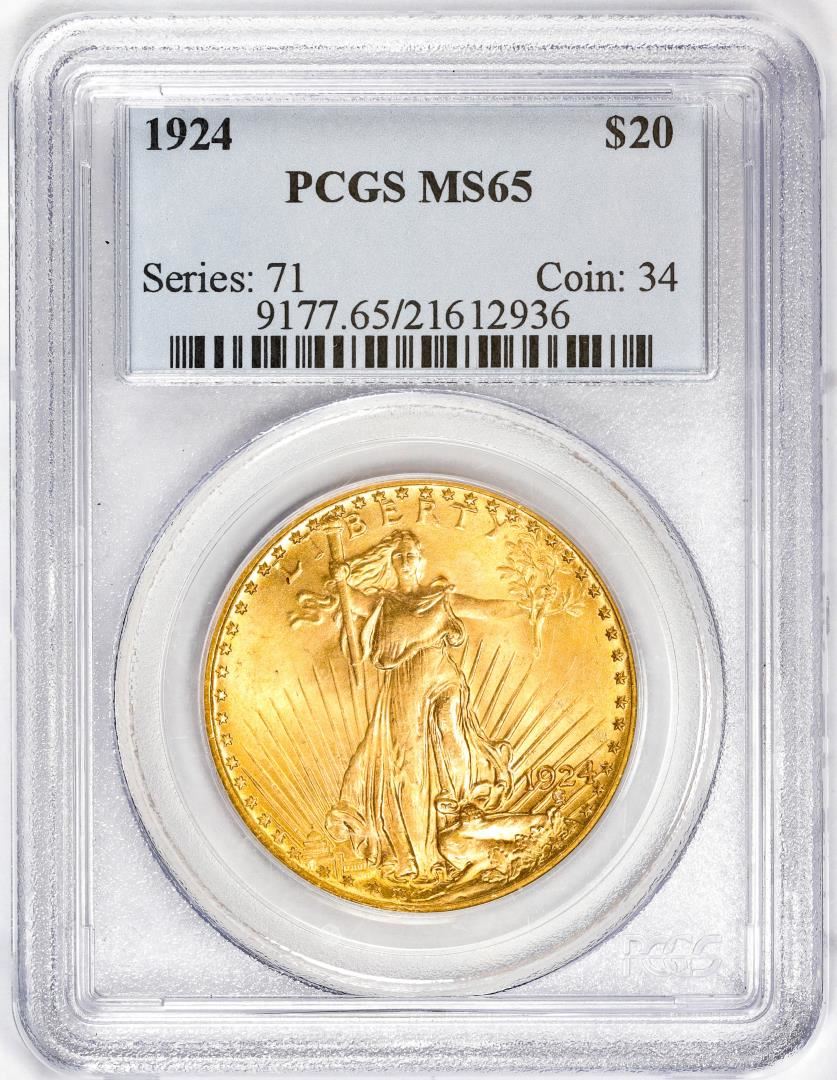 One 1924 $20 St. Gaudens Double Eagle Gold Coin PCGS MS65. PCGS Graded.