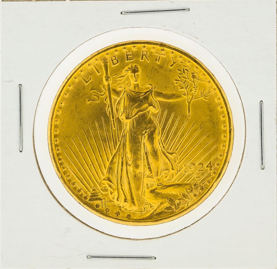 One 1924 $20 St. Gaudens Double Eagle Gold Coin.