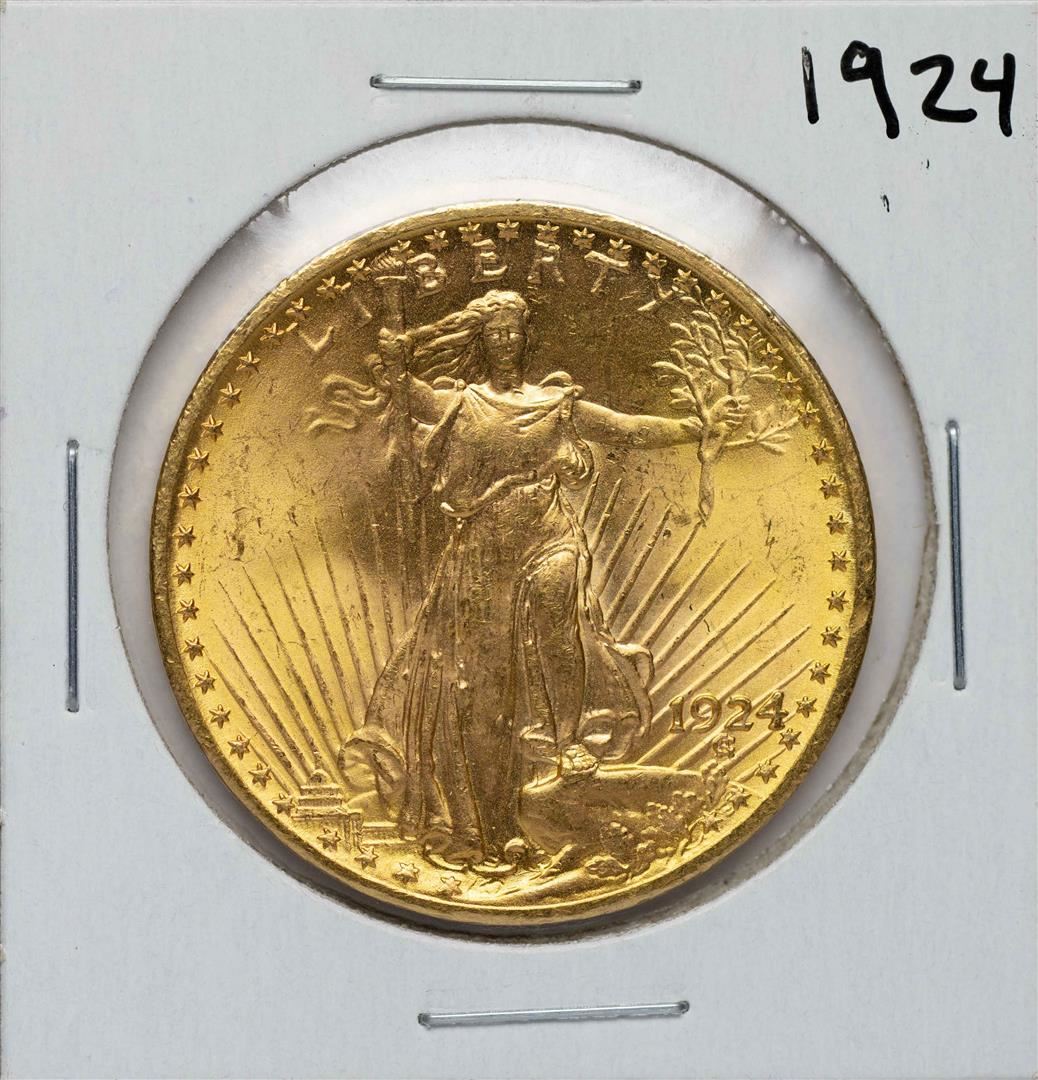One 1924 $20 St. Gaudens Double Eagle Gold Coin.