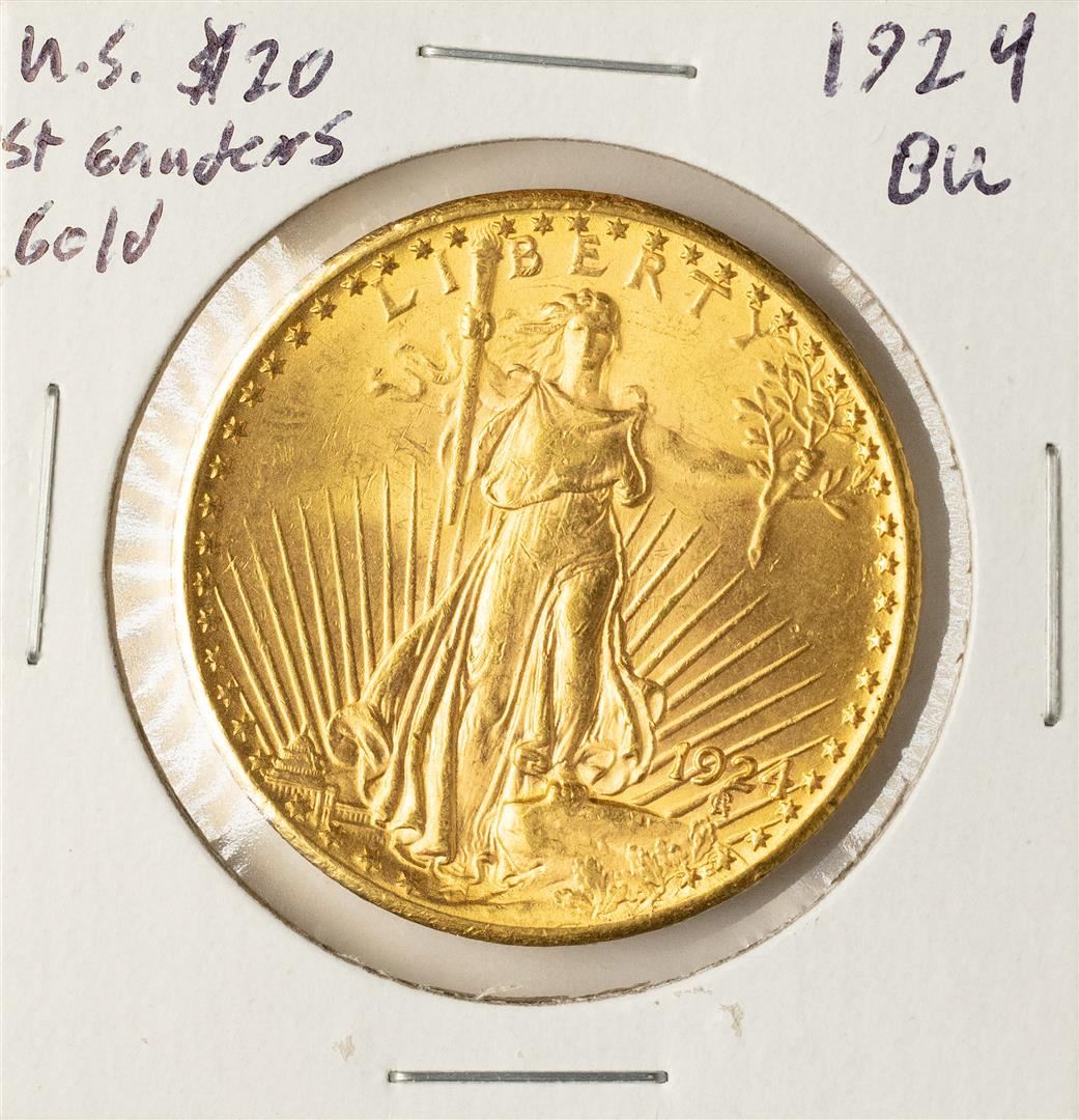 One 1924 $20 St. Gaudens Double Eagle Gold Coin.