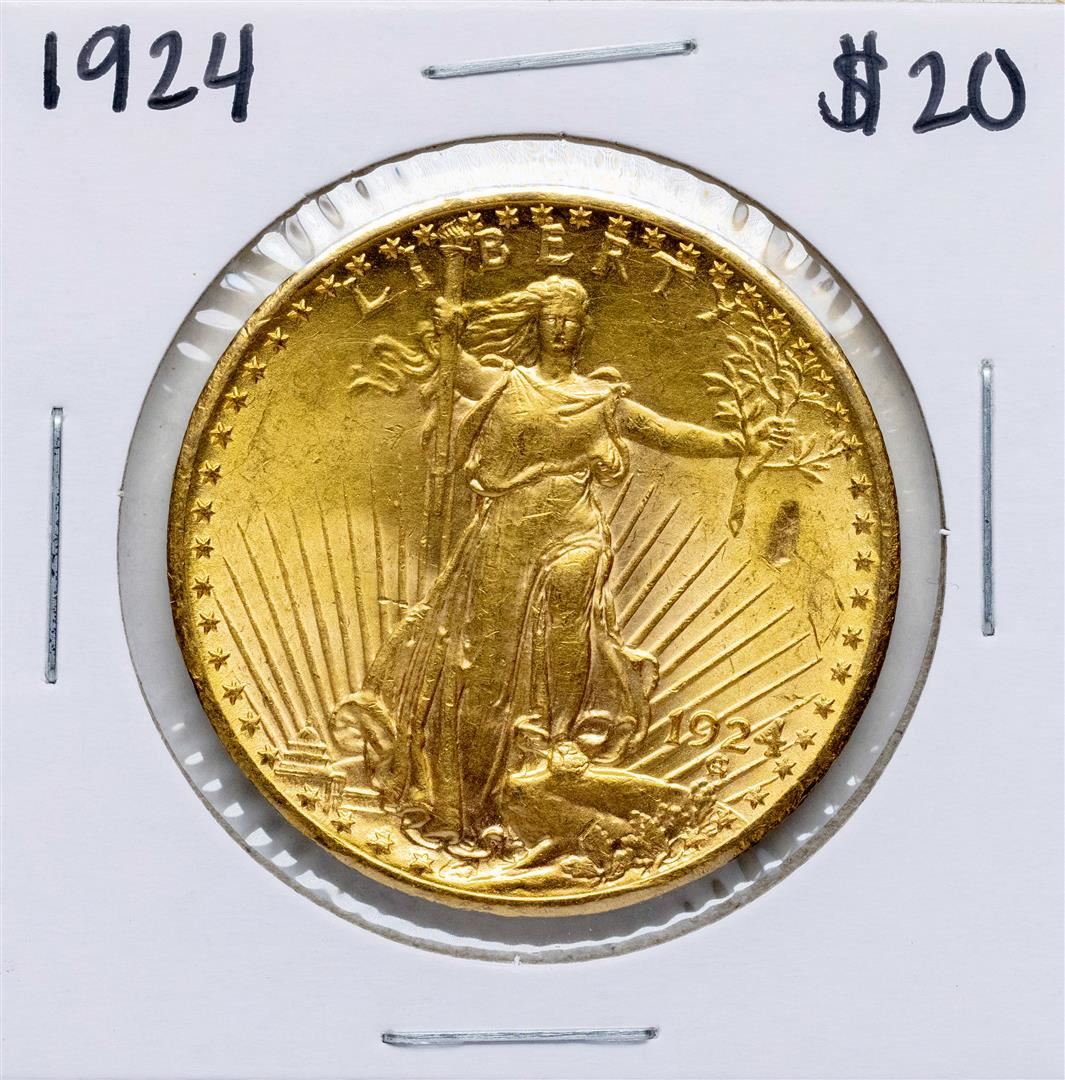 One 1924 $20 St. Gaudens Double Eagle Gold Coin.