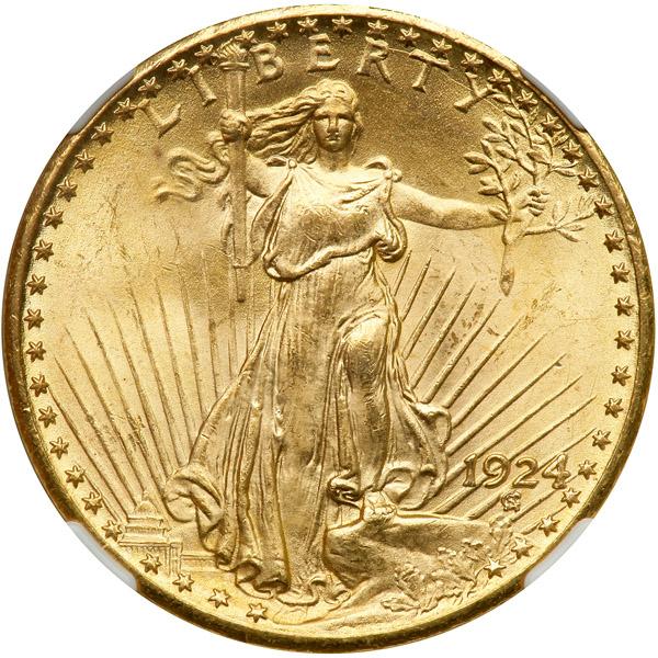 1924. NGC graded MS-66. An untoned frosty gem, and a fresh-looking specimen that will entice bidding (PCGS # 9177) .