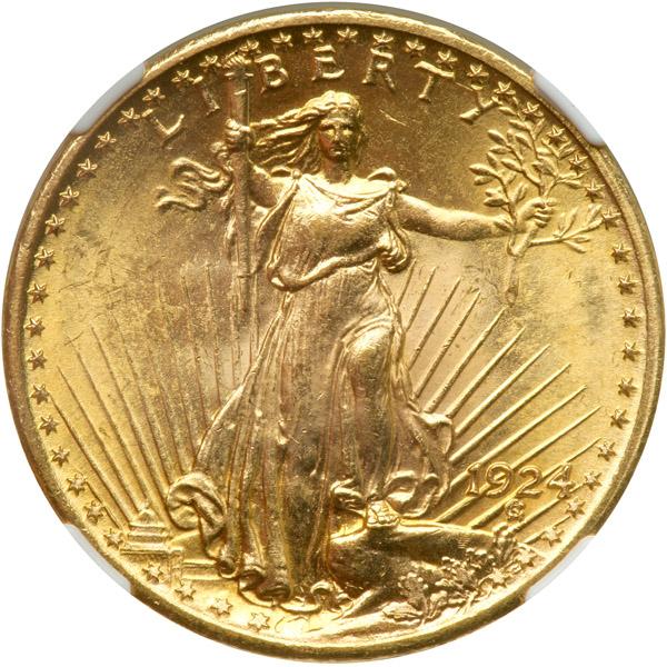 1924. NGC graded MS-67. An intensely brilliant untoned gem. With flattering mint luster and a minimum number of wispy abrasions, this vibrant coin is every bit the Superb Gem. Sheer boldness of strike throughout. Pop 160; 4 finer (PCGS # 9177) .