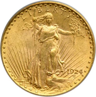 1924 $20 St. Gaudens. PCGS graded MS-62. Frosty and well struck (PCGS # 9177) .