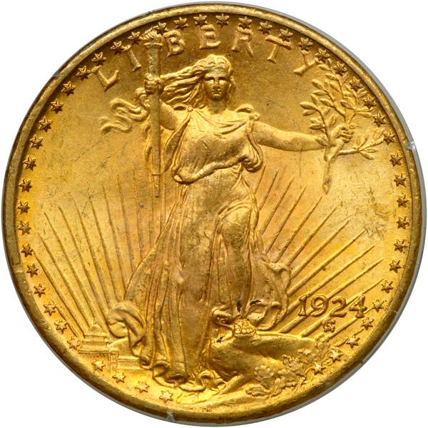 1924 $20 St. Gaudens. PCGS graded MS-64. Housed in a First Generation Holder. Nicely toned (PCGS # 9177) .