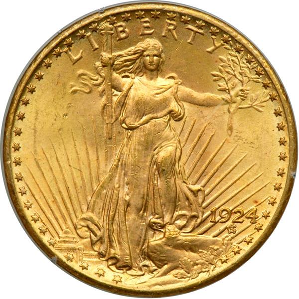 1924 $20 St. Gaudens. PCGS graded MS-64. Housed in a First Generation Holder. Nice toning and well struck (PCGS # 9177) .