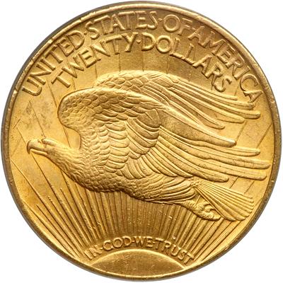1924 $20 St. Gaudens. PCGS graded MS-64. Brilliant and refreshingly clean for this issue, with flickering luster in the fields and sundrenched golden devices. The fields are untoned and satin with much eye-appeal (PCGS # 9177).