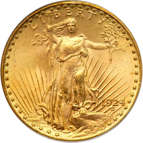 1924. PCGS graded MS-66. A frosty gem with gold and olive mint bloom colors, another outstanding Gem (PCGS # 9177) .