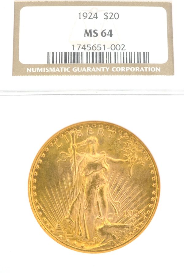 *1924 $20 U.S. MS64 NGC Saint Gaudens Gold Coin