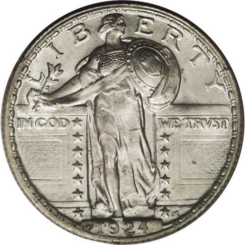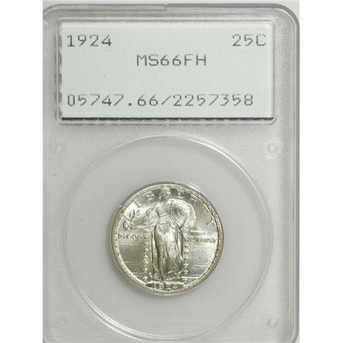 <B>1924 25C MS66 Full Head PCGS.</B></I> Pastel ice-blue and honey toning graces this highly lustrous and gorgeously preserved Premium Gem. The strike is formidable for a Type Two quarter, not only on Liberty's head, but on her waist and shield rivets as well. Housed in a first-generation holder.<BR><BR><b>Shipping:</b> Coins & Currency (<a target="_blank" href="http://www.heritageauctions.com/common/shipping.php">view shipping information</a>)
