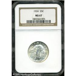 1924 25C MS67 NGC. Nearly white, lustrous surfaces