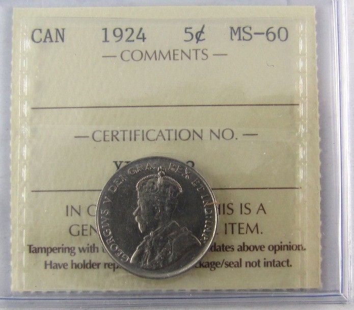 1924 5¢ ICCS MS60.
