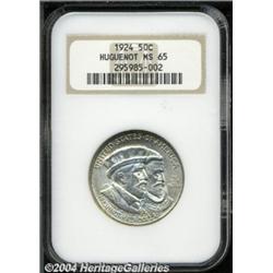 <table><tr><td><table><tr><td>1924 50C Huguenot MS65 NGC. Well struck and lightly toned, with bright, glittering luster and slightly grainy, matte-like surfaces, that only show a handful of trivial surface blemishes scattered over the obverse and the reverse combined. <BR><BR><B>Important notice:</B> Heritage usually auctions material at the rate of 200-250 lots per hour. On some occasions eBay Live bid software or the Internet may not be able to keep up with the pace of the auction. We recommend placing a realistic absentee bid now as insurance to avoid disappointment. Occasionally the auctioneer may eliminate or reject an eBay Live bid, and the auctioneer may also reopen a lot after the close of the eBay live bidding (usually because we missed an audience bid), and may reject your bid even if it shows you as the winning bidder. By bidding via eBay Live, you agree that Heritage may award the lot to another bidder at its sole discretion under the circumstances described above or any other reasonable circumstances. Since eBay bids are not shown to us until we open the lot on the floor, we treat those bids just like floor bids. In most cases the floor responds before the eBay bid is presented to us, due to Internet lag time, so for consistency we have made it a policy that floor bids are always considered first over tie eBay live bids. Also please note that all Heritage lots purchased through eBay Live carry a 20% Buyer's Premium. Please make sure you read the Terms and Conditions before you bid. <BR><BR><B>IMPORTANT ANNOUNCEMENT ABOUT RESERVES:</B> Heritage now divulges all reserves on its web site 7 days before every auction. If you want to know whether the reserve on this lot has been met, and if not, what the reserve amount is, please visit this lot page on the HeritageCoin.com web site, or email: bid@HeritageGalleries.com </span></font></td></tr></table></td></tr></table>