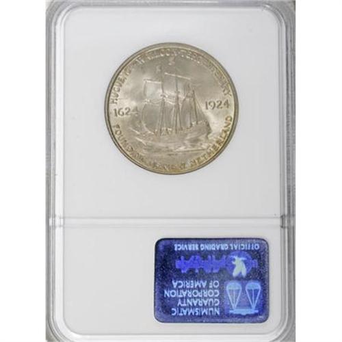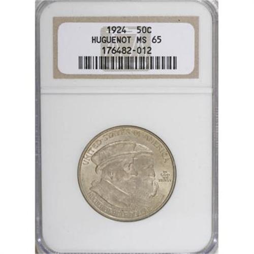 <B>1924 50C Huguenot MS65 NGC.</B></I> NGC Census: (926/302). PCGS Population (851/342). Mintage: 142,080. Numismedia Wsl. Price for NGC/PCGS coin in MS65: $440. (#9314)<BR><BR><b>Shipping:</b> Coins & Currency (<a target="_blank" href="http://www.heritageauctions.com/common/shipping.php">view shipping information</a>)