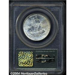 <B>1924<50C> Huguenot MS65 PCGS.</B></I> Untoned except for a blush of peach and lilac color on the right central border of the reverse. A frosty Gem with a meticulous strike and attractive preservation. <BR><BR><B>Important notice:</B> Heritage usually auctions material at the rate of 200-250 lots per hour. On some occasions eBay Live bid software or the Internet may not be able to keep up with the pace of the auction. We recommend placing a realistic absentee bid now as insurance to avoid disappointment. Occasionally the auctioneer may eliminate or reject an eBay Live bid, and the auctioneer may also reopen a lot after the close of the eBay live bidding (usually because we missed an audience bid), and may reject your bid even if it shows you as the winning bidder. By bidding via eBay Live, you agree that Heritage may award the lot to another bidder at its sole discretion under the circumstances described above or any other reasonable circumstances. Since eBay bids are not shown to us until we open the lot on the floor, we treat those bids just like floor bids. In most cases the floor responds before the eBay bid is presented to us, due to Internet lag time, so for consistency we have made it a policy that floor bids are always considered first over tie eBay live bids. Also please note that all Heritage lots purchased through eBay Live carry a 20% Buyer's Premium. Please make sure you read the Terms and Conditions before you bid. </span></font></tr></table></td></tr></table>