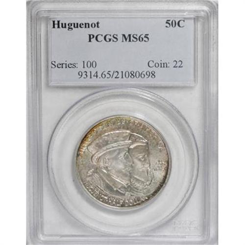 <B>1924 50C Huguenot MS65 PCGS.</B></I> PCGS Population (840/333). NGC Census: (905/290). Mintage: 142,080. Numismedia Wsl. Price for NGC/PCGS coin in MS65: $460. (#9314)<BR><BR><b>Shipping:</b> Coins & Currency (<a target="_blank" href="http://www.heritageauctions.com/common/shipping.php">view shipping information</a>\)