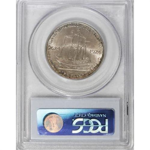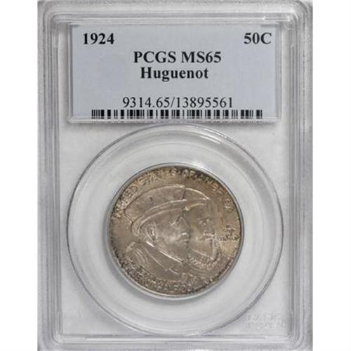 <B>1924 50C Huguenot MS65 PCGS.</B></I> PCGS Population (840/333). NGC Census: (910/293). Mintage: 142,080. Numismedia Wsl. Price for NGC/PCGS coin in MS65: $460. (#9314)<BR><I>From The Frank DuVall Collection of U.S. Commemoratives.</B></I><BR><BR><b>Shipping:</b> Coins & Currency (<a target="_blank" href="http://www.heritageauctions.com/common/shipping.php">view shipping information</a>\)