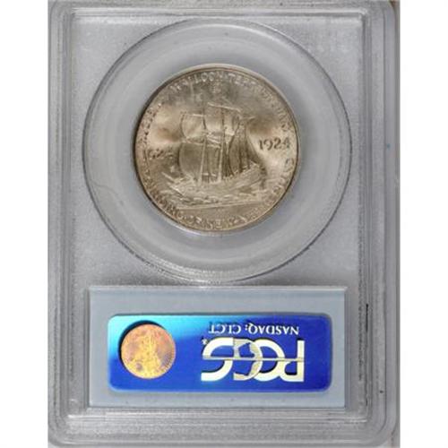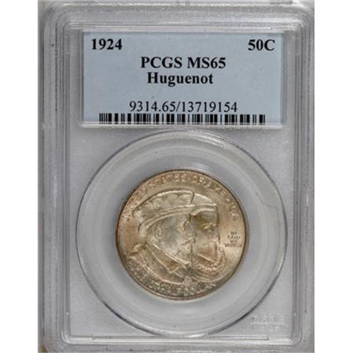 <B>1924 50C Huguenot MS65 PCGS.</B></I> PCGS Population (843/338). NGC Census: (919/297). Mintage: 142,080. Numismedia Wsl. Price for NGC/PCGS coin in MS65: $440. (#9314)<BR><BR><b>Shipping:</b> Coins & Currency (<a target="_blank" href="http://www.heritageauctions.com/common/shipping.php">view shipping information</a>)