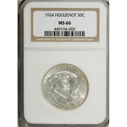 <B>1924 50C Huguenot MS66 NGC.</B></I> . NGC Census: (267/36). PCGS Population (308/37). Mintage: 142,080. Numismedia Wsl. Price for NGC/PCGS coin in MS66: $775. (#9314)<BR><BR><b>Shipping:</b> Coins & Currency (<a target="_blank" href="http://www.heritageauctions.com/common/shipping.php">view shipping information</a>)