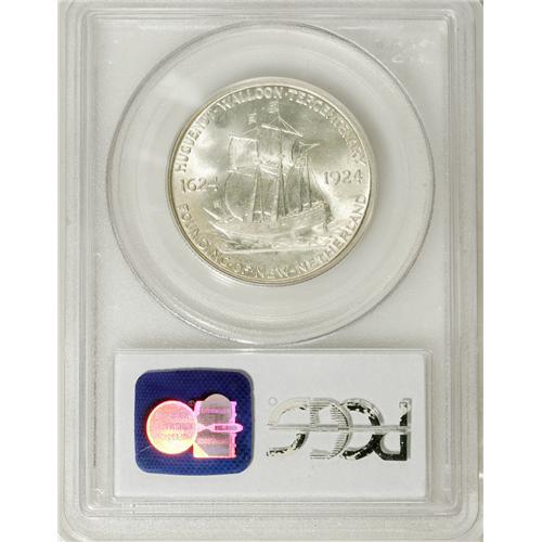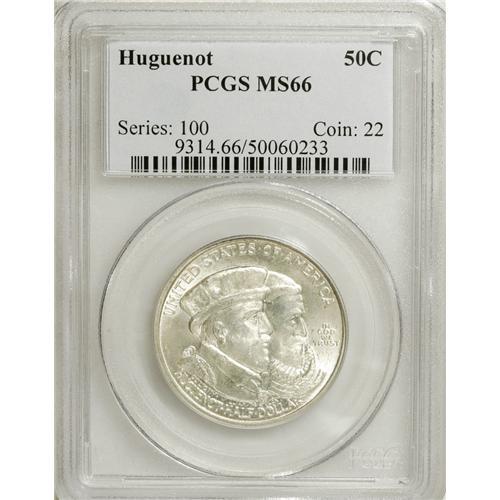 <B>1924 50C Huguenot MS66 PCGS.</B></I> A golden-tan and silver-white example, solidly struck with lovely, frosty luster. An exquisitely preserved representative of this Roaring Twenties issue, controversial due to its distributors, which acted as the front for an alliance of churches.<BR><BR><b>Shipping:</b> Coins & Currency (<a target="_blank" href="http://www.heritageauctions.com/common/shipping.php">view shipping information</a>)