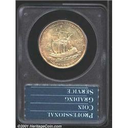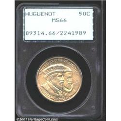 1924 50C Huguenot MS66 PCGS. Lustrous with banana-yellow color and a sharp strike. The upper left reverse has a fingerprint trace. The upper obverse has prominent die polishing lines, as struck. A Gem with seemingly pristine surfaces.From the Ric Leichtung Collection. Important notice: We expect to be auctioning lots at the rate of 200-250 per hour. Sometimes eBay Premier live bid software cannot keep up with that pace, so we strongly recommend that you place a realistic proxy bid now as insurance to avoid disappointment. Also please note that all Heritage/CAA lots purchased through eBay Premier carry a 20% Buyer's Premium.