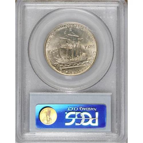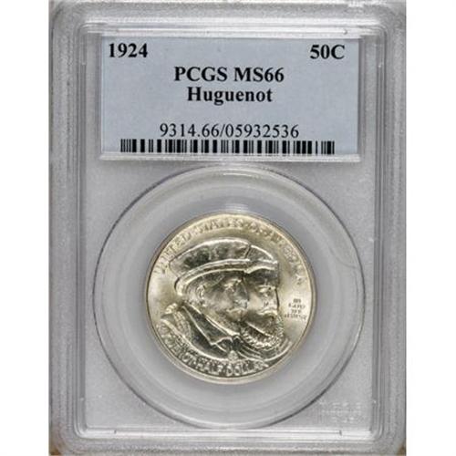 <B>1924 50C Huguenot MS66 PCGS.</B></I> This lustrous and exactingly struck tercentenary commemorative is gently toned in sun-gold shades. Seldom encountered any finer.<BR><BR><b>Shipping:</b> Coins & Currency (<a target="_blank" href="http://www.heritageauctions.com/common/shipping.php">view shipping information</a>)