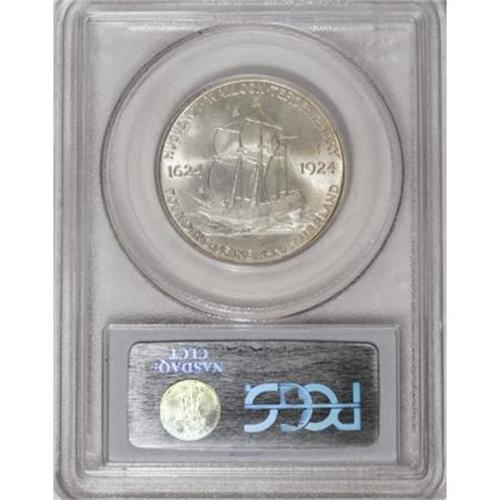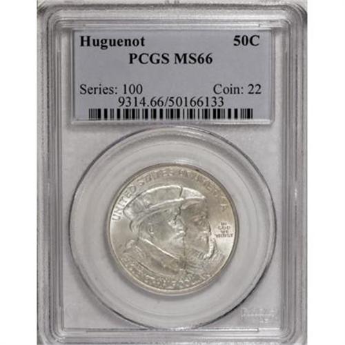 <B>1924 50C Huguenot MS66 PCGS.</B></I> Light tawny-gold graces this sharply struck and shimmering Premium Gem. The reverse field near 11 o'clock displays a glimpse of prooflike surface, where the mint polished the die. Most of the mintage went into non-numismatic hands.<BR><I>From The Southwest Collection.</B></I><BR><BR><b>Shipping:</b> Coins & Currency (<a target="_blank" href="http://www.heritageauctions.com/common/shipping.php">view shipping information</a>)