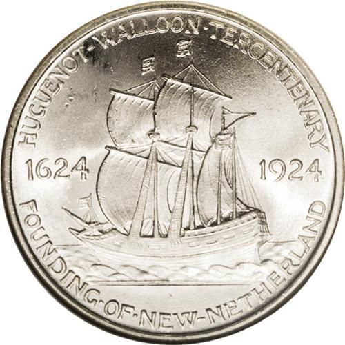 <B>1924<50C> Huguenot MS67 NGC.</B></I> It is much more challenging to locate pre-1930 commemorative halves in Superb condition than those issues struck in the 1930s. This is a nearly flawless example of this popular issue. The mint luster is bright and frosted, further enhancing the silver-white sheen seen on each side. Only 30 pieces have been so graded by NGC with none finer at either service (4/06).