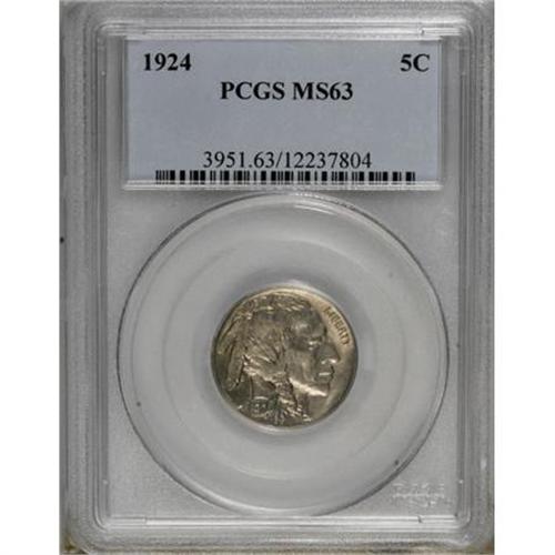 <B>1924 5C MS63 PCGS.</B></I> PCGS Population (146/600). NGC Census: (82/334). Mintage: 21,620,000. Numismedia Wsl. Price for NGC/PCGS coin in MS63: $120. (#3951)<BR><BR><B>Coin Engraver:</B> James E. Fraser<BR><BR><b>Shipping:</b> Coins & Currency (<a target="_blank" href="http://www.heritageauctions.com/common/shipping.php">view shipping information</a>)
